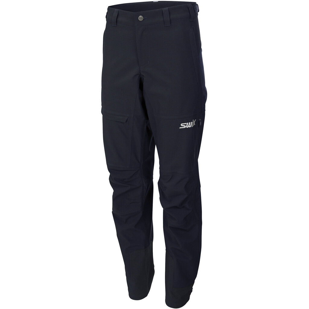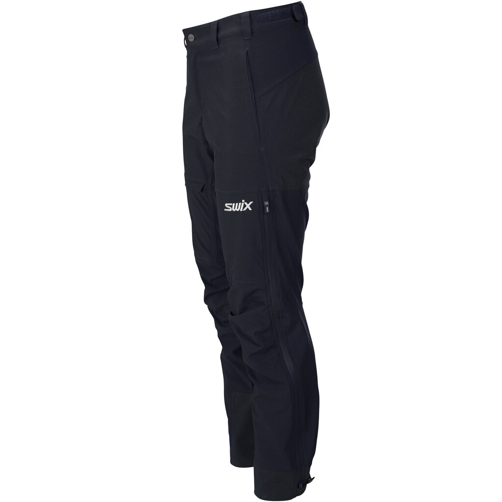 Blizzard pants are a modern ski pant suitable for mountain skiing and touring. They match the Swix Blizzard Anorak, offering richness in details and functionality. Waterproof fabric and taped seams make it a good choice when the weather is unpredictable. There are zippers on the sides for extra ventilation, and customization is possible with buttons on both the waist and leg.